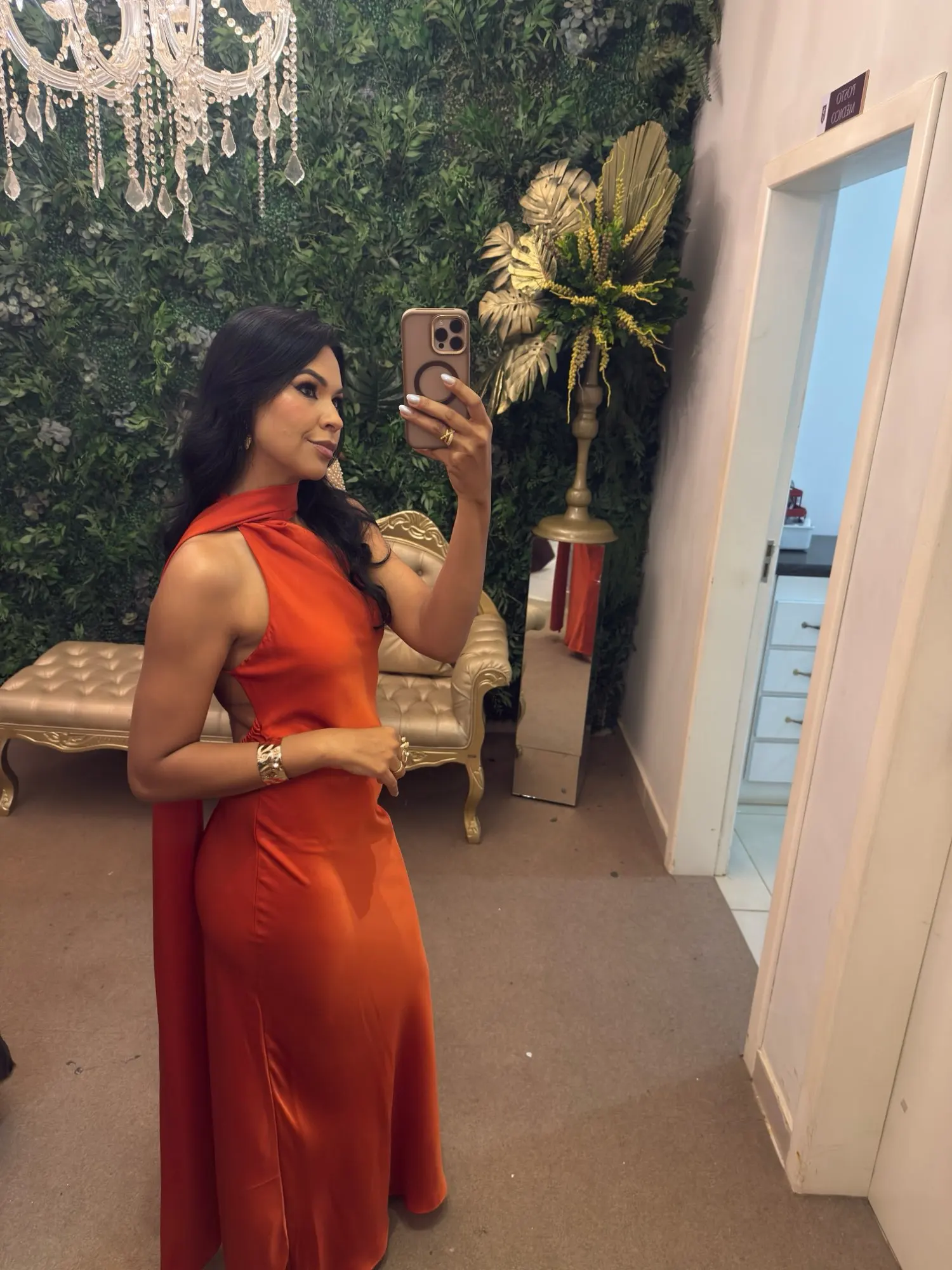 De nauwsluitende pasvorm benadrukt op elegante wijze het silhouet, terwijl de rijke kleur en vloeiende stof zorgen voor een opvallend maar verfijnd geheel. Perfect voor speciale gelegenheden, gala’s of chique events waar je met stijl en zelfvertrouwen wilt verschijnen.